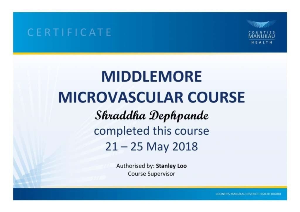 - Fellowship in Plastic Surgery (New Zealand)