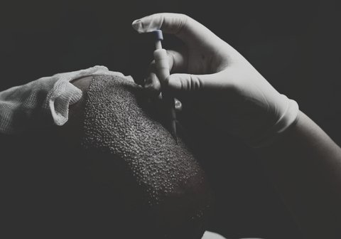 Hair follicles are extracted and directly implanted into the scalp using a specialized implanter pen.
