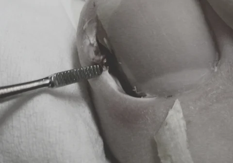 The toe is cleaned and numbed using local anesthesia to ensure a painless experience.